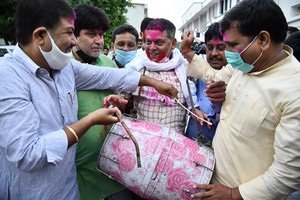 للن سنگھ کے جنتادل یو کے قومی صدر منتخب ہونے پرپٹنہ میں خوشی کا اظہار کرتے ہوئے پارٹی کارکنان