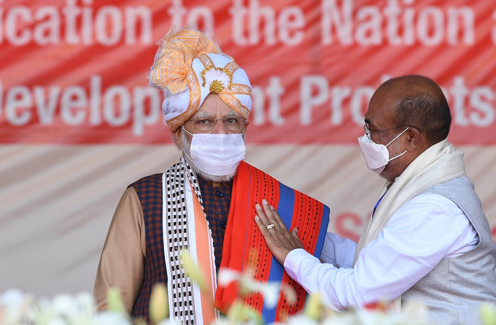 مسٹر مودی نےیہاں ہاپتا کانگجی بنگ میں 4800 کرو ڑ روپے سے زیادہ کی لاگت والے 22 ترقیاتی پروجیکٹوں کا رسمی طورپر افتتاح اور سنگ بنیاد رکھا۔